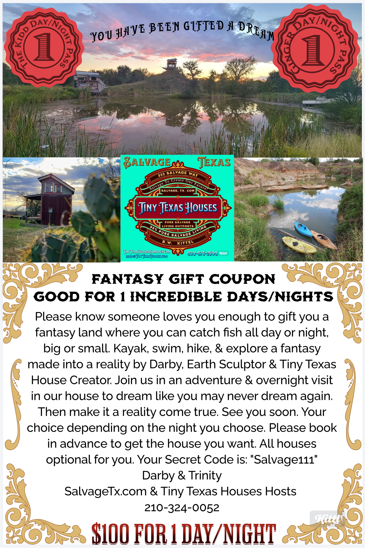 A chance to escape & gift a dreamy stay in a man made paradise called Salvage, Texas.